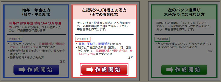 ▼「左記以外の所得のある方」の作成開始をクリックします。