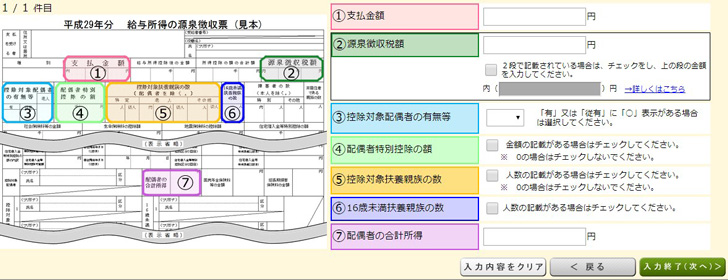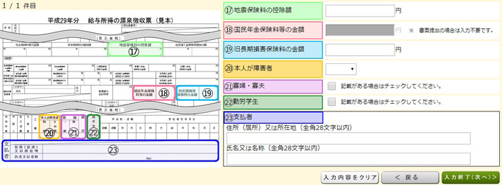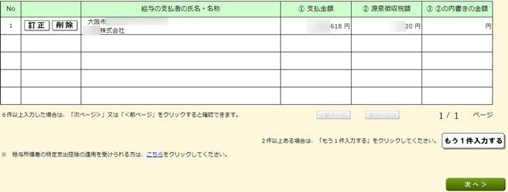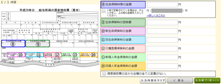 ▼次のページも入力が必要であれば、どんどん源泉徴収票から転記していきます。