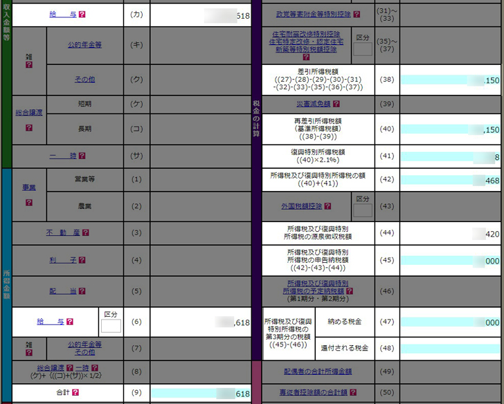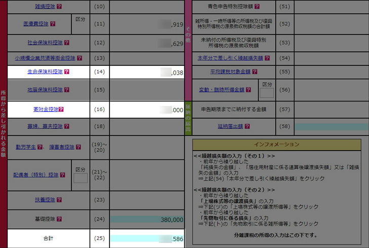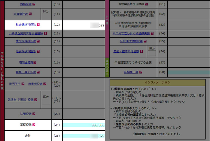 こちらも上記のように入力していけば、自動的に控除額が反映されていきます。