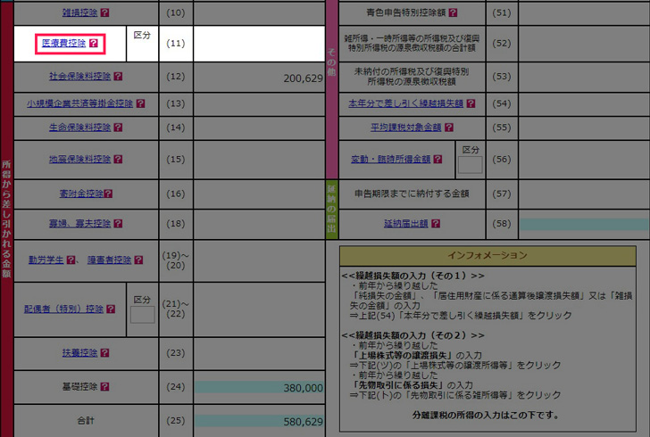▼まずは「医療費控除」から入力していきます。