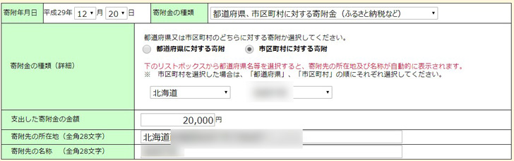▼生命保険料控除と寄付金控除の項目にも、控除額が反映しました。