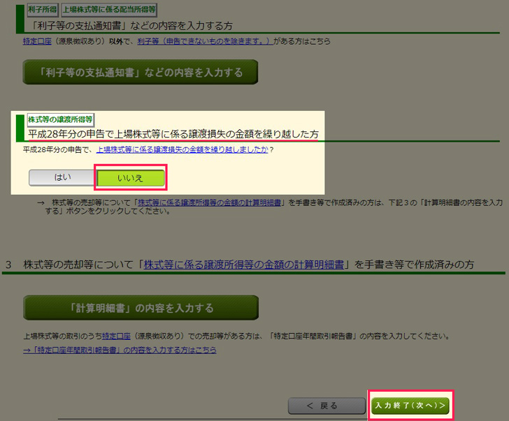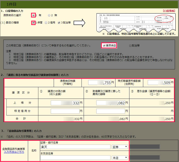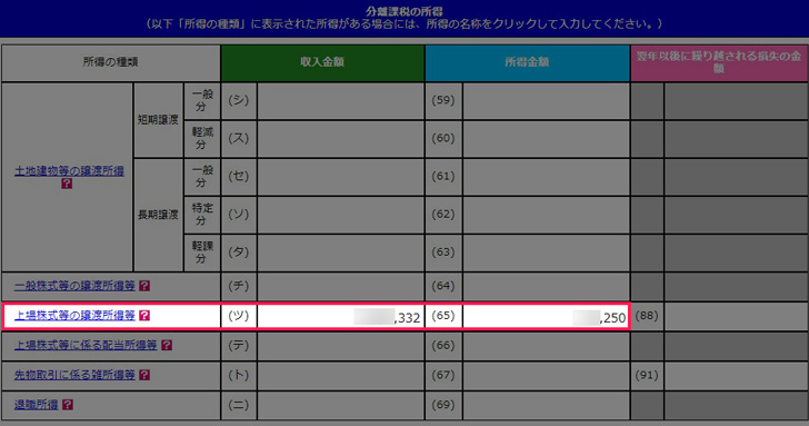 分離課税の所得の入力