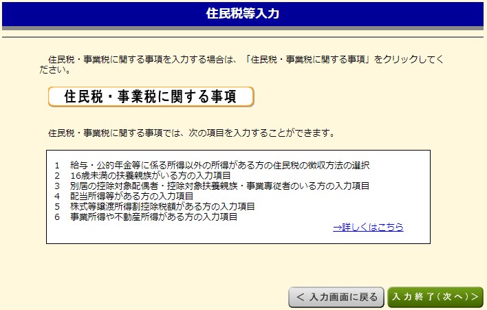 住民税の項目は特に説明するまでもなく、出てくる案内順に入力していけばOKです。