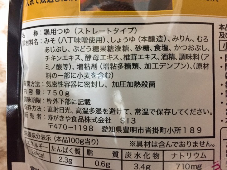 【寿がきや】八丁味噌 みそ煮込鍋つゆ。もう少し濃厚さとコクがあればもっと美味しいと感じられた鍋スープでした!