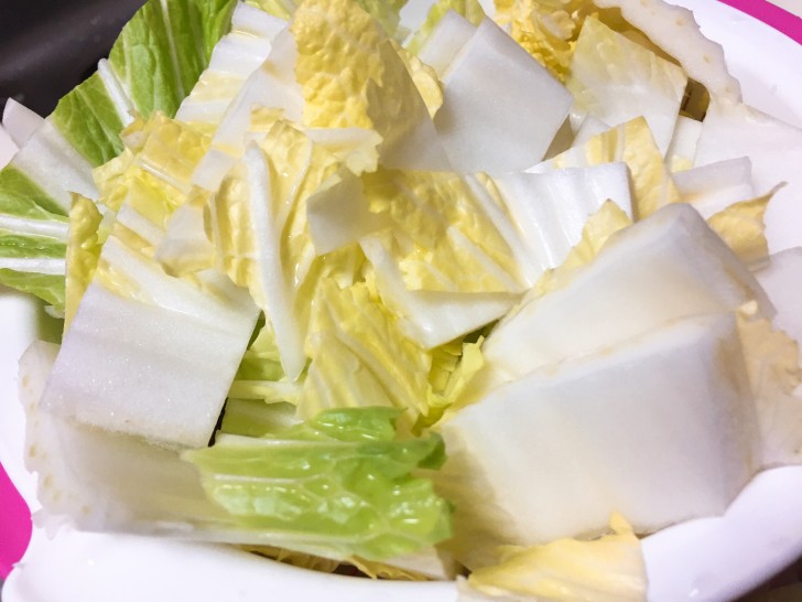 ここに豚バラ肉やもち餃子(←我が家の定番)を入れて煮込みました。