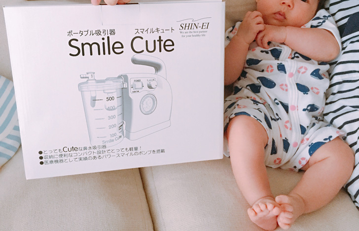 そんな折、僕の兄夫婦から出産祝いということで、電動鼻水吸引機「スマイルキュート」をプレゼントでもらいました。