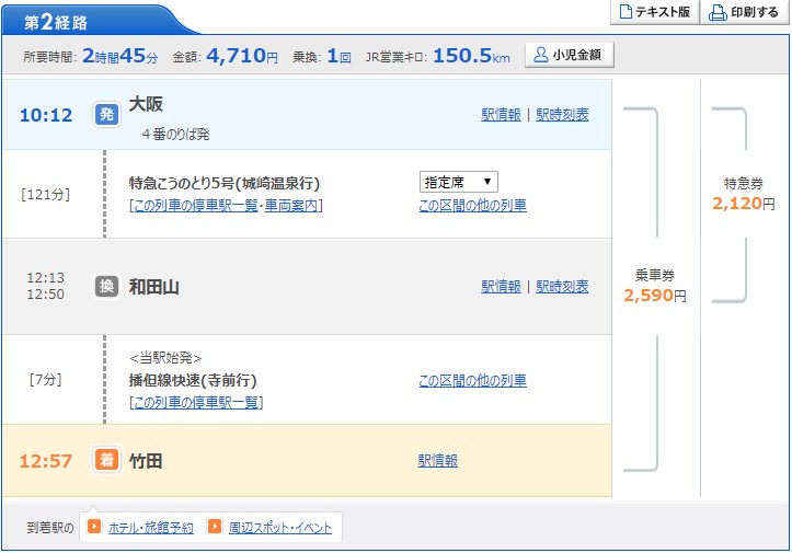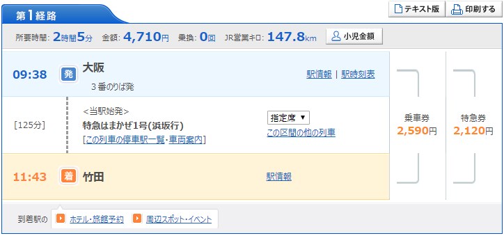 • 多少料金が高くなっても良いから、はまかぜで乗換なし&移動時間も短く行くか
