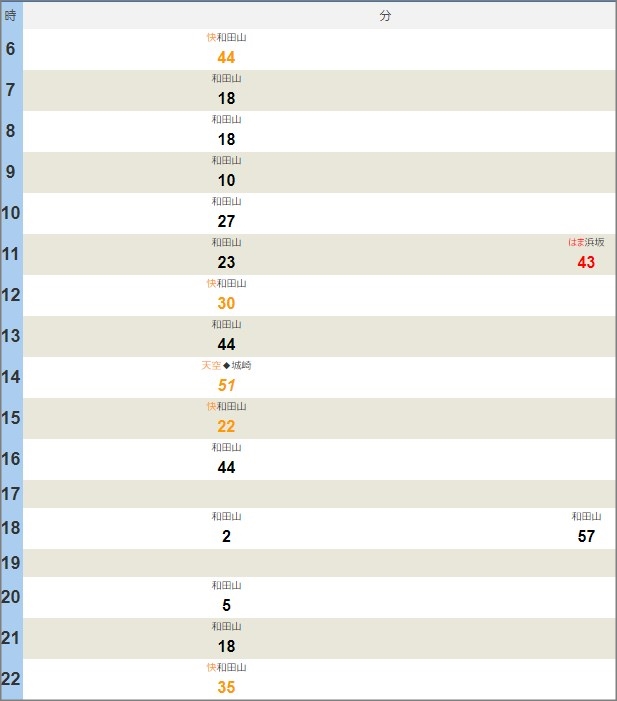 ▼以下は、竹田駅発の(和田山方面へと向かう)時刻表です