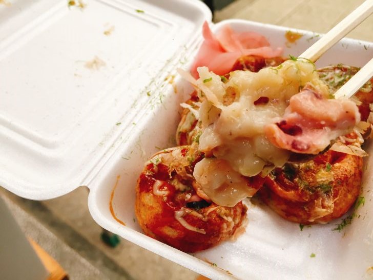 タコはちょこっと小ぶりですが、食べ歩きの気分を高めるには十分な味のたこ焼きでした。