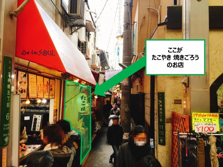 ものすごい狭い路地の一角にあるたこ焼き屋さんです。(詳細MAPは後半でご紹介!)