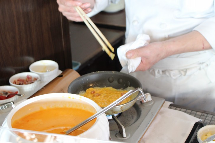 ▼ブッフェが並べられてる隣にオムレツを作ってくれる場所があります。