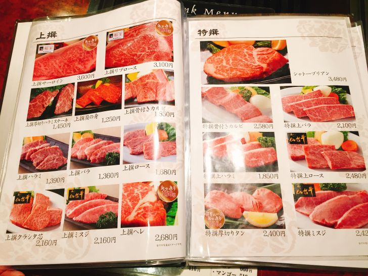 ▼上撰ロース / @1,680円と上撰骨付きカルビ / @1,850円