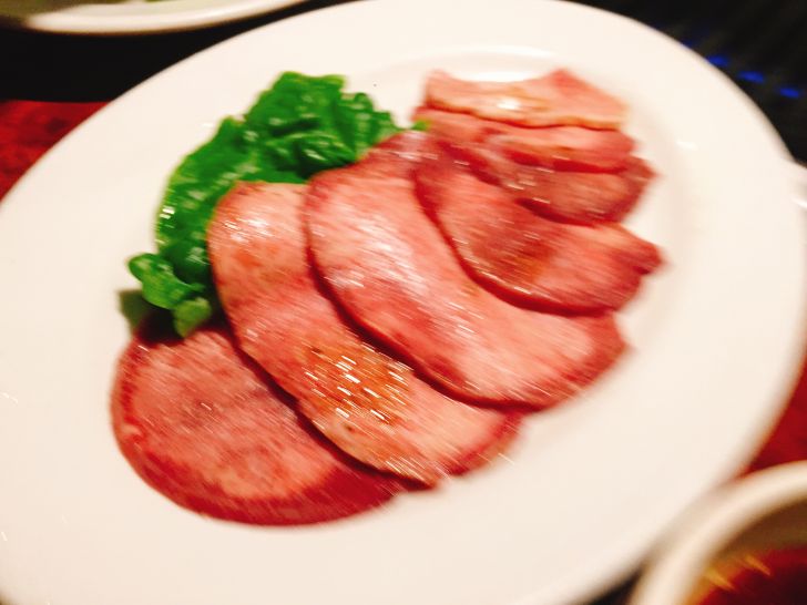 ▼牛タン定食の牛タン(ブレブレです…)